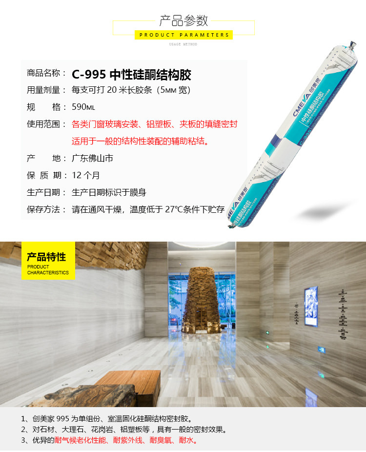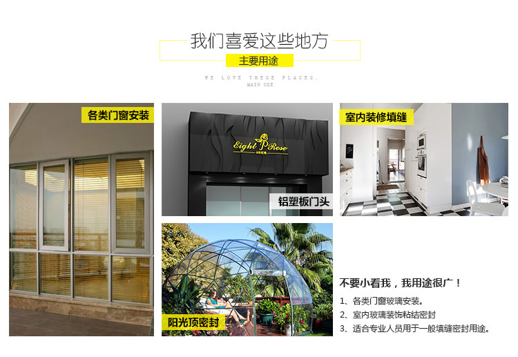 2、對(duì)石材、大理石、花崗巖、鋁塑板等,具有一般的密封效果。